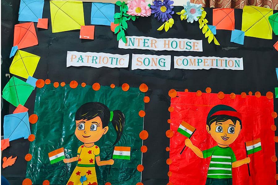 Students from all four houses participated wholeheartedly, presenting soulful patriotic songs with synchronised singing, confident stage presence, and emotional expression. The performances reflected devotion, discipline, teamwork, and national pride, creating an atmosphere filled with patriotic fervour.