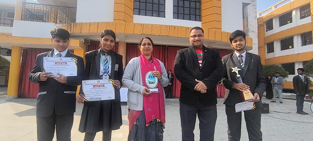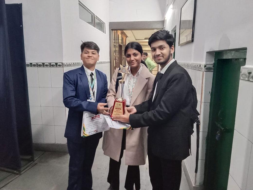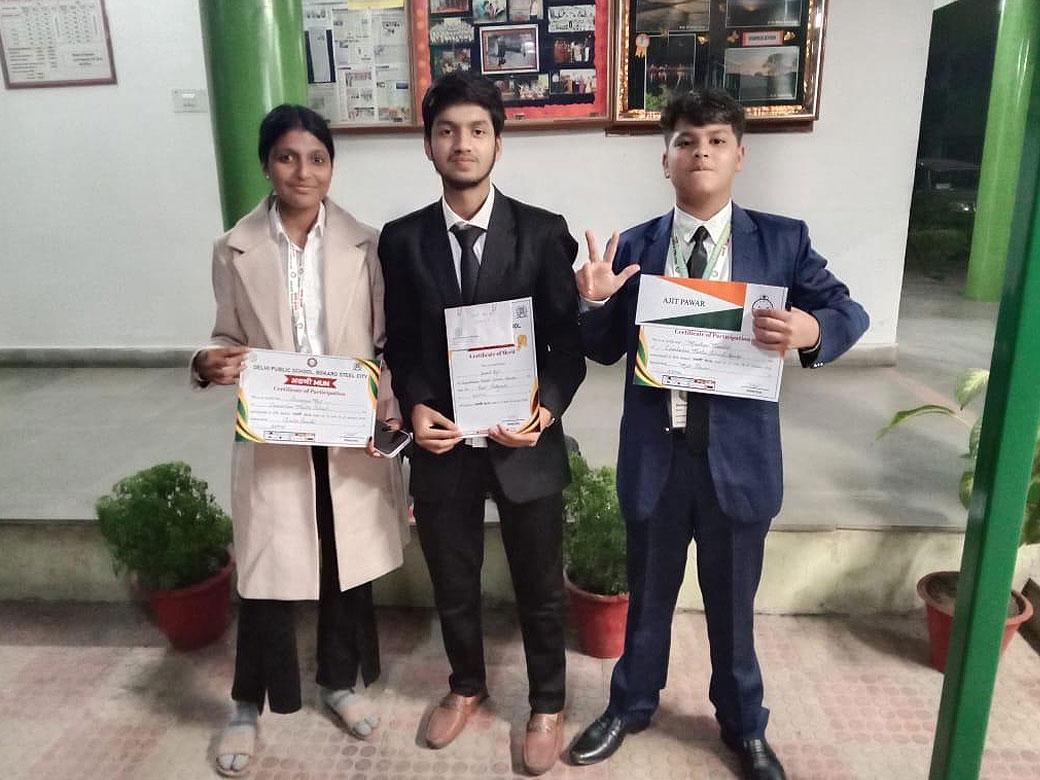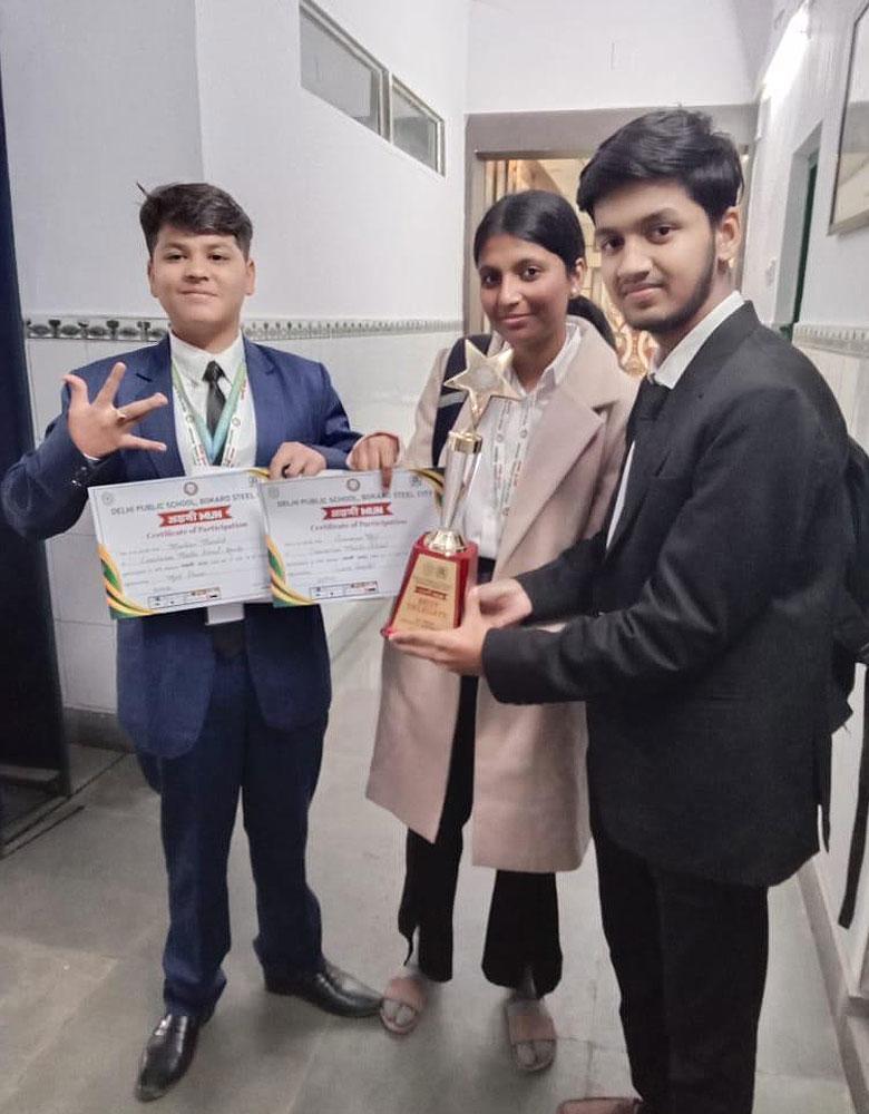 A total of 101 students from ten schools across different districts of Jharkhand participated in the event, and our students made a remarkable impression. Amrit Raj, who represented Manish Sisodia, was awarded the Best Delegate Award, receiving a trophy, a cash prize of โน2500/-, and a merit certificate.