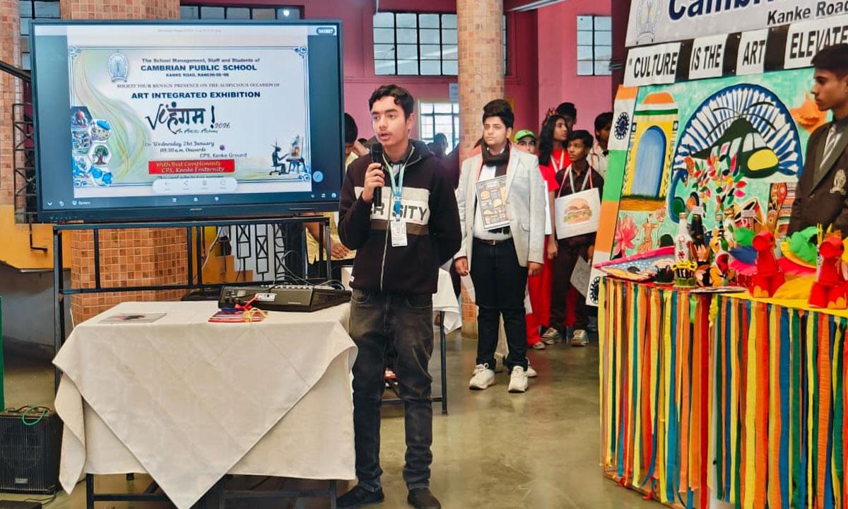 Cambrian Public School, Kanke Road, Ranchi proudly organised an Art-Integrated Exhibition “Viहंगम – An Artistic Alchemy” on 21/01/2026. The exhibition beautifully showcased the creativity and innovation of our students, where art blended seamlessly with academics. Students presented impressive models, artworks, and creative displays connected to all subjects, transforming learning into a vibrant and engaging experience.