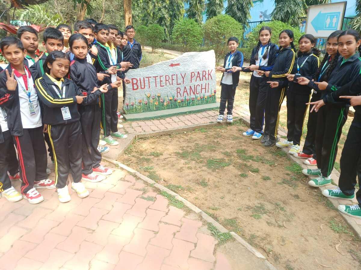 Students of Class IV and V of Cambrian Public School, Kanke Road, Ranchi, enjoyed a fun-filled experiential learning trip to Bhagwan Birsa Aquarium Park. The children had a wonderful time playing badminton, dancing to music, and enjoying snacks. They explored the aquarium, watched different kinds of fishes, and visited the butterfly garden filled with colorful butterflies, flowers, and plants.