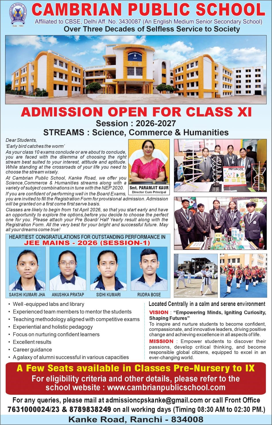 *** Result of Provisional Admission Test held on 17 March 2026 (Session : 2026-2027)