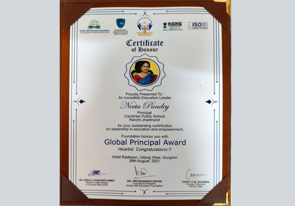 Cambrian Public School is glittering with a new crown of Global School Award 2021, which was proudly presented by Global Education Summit on Skill and Vocational Education on 28th August 2021.